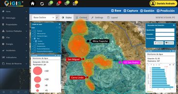 Intelligent System of Geographic information, servicios de información cartográfica e hidrológica actualizada con sensores, drones, imágenes satelitales, para realizar análisis, alertas con semáforos en linea.